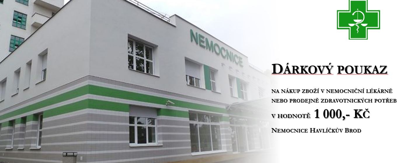 V nemocniční lékárně a v prodejně zdravotnických potřeb je možné zakoupit dárkové poukazy na nákup zboží v hodnotě 500,- a 1000,- Kč.