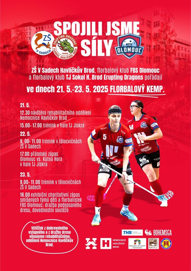 Florbalový kemp začal v Havlíčkově Brodě 21.5. a byl zakončen exhibičním utkáním v pátek 23.5.2025. V průběhu kempu sportovkyně také navštívily naši nemocnici.
