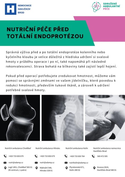 Čeká Vás výměna kyčelního nebo kolenního klobu a pitřebujete pomoci zredukovat svoji váhu? obrátit se můžete na naši nutriční ambulanci nebo spolupracující ambulance v okolí.