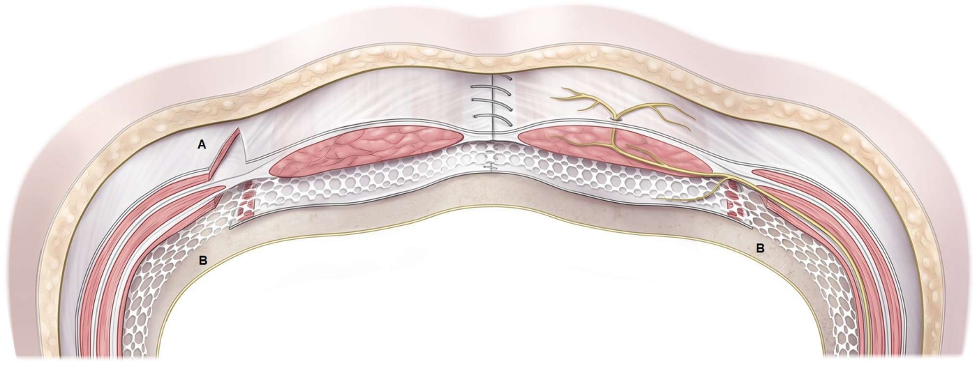 Místo toho jsme v souladu s vývojem herniologie a doporučením EHS zavedli operace, kde se implantát vkládá sublay do retromuskulární vrstvy mimo dutinu břišní. Základem je takzvaná operace dle Rivese a Stoppy, kterou provádíme otevřeně i laparoskopicky včetně různých modifikací, které volíme dle potřeby dle klinického nálezu a stavu pacienta – eTEP, MILOS, eMILOS.