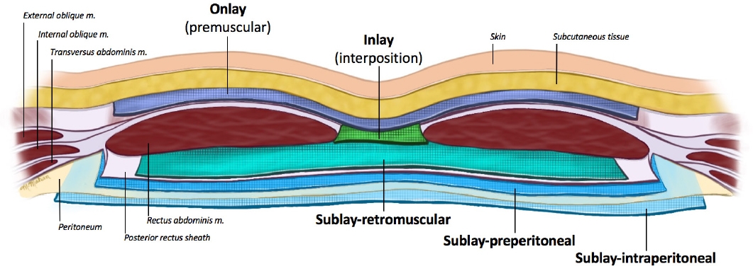 V současné době je Evropskou herniologickopu společností doporučované jako nejlepší sublay uložení síťky mimo prostor volné dutiny břišní. Rozvoj implantátů a operačních technik v posledních letech toto v mnoha případech umožňuje.