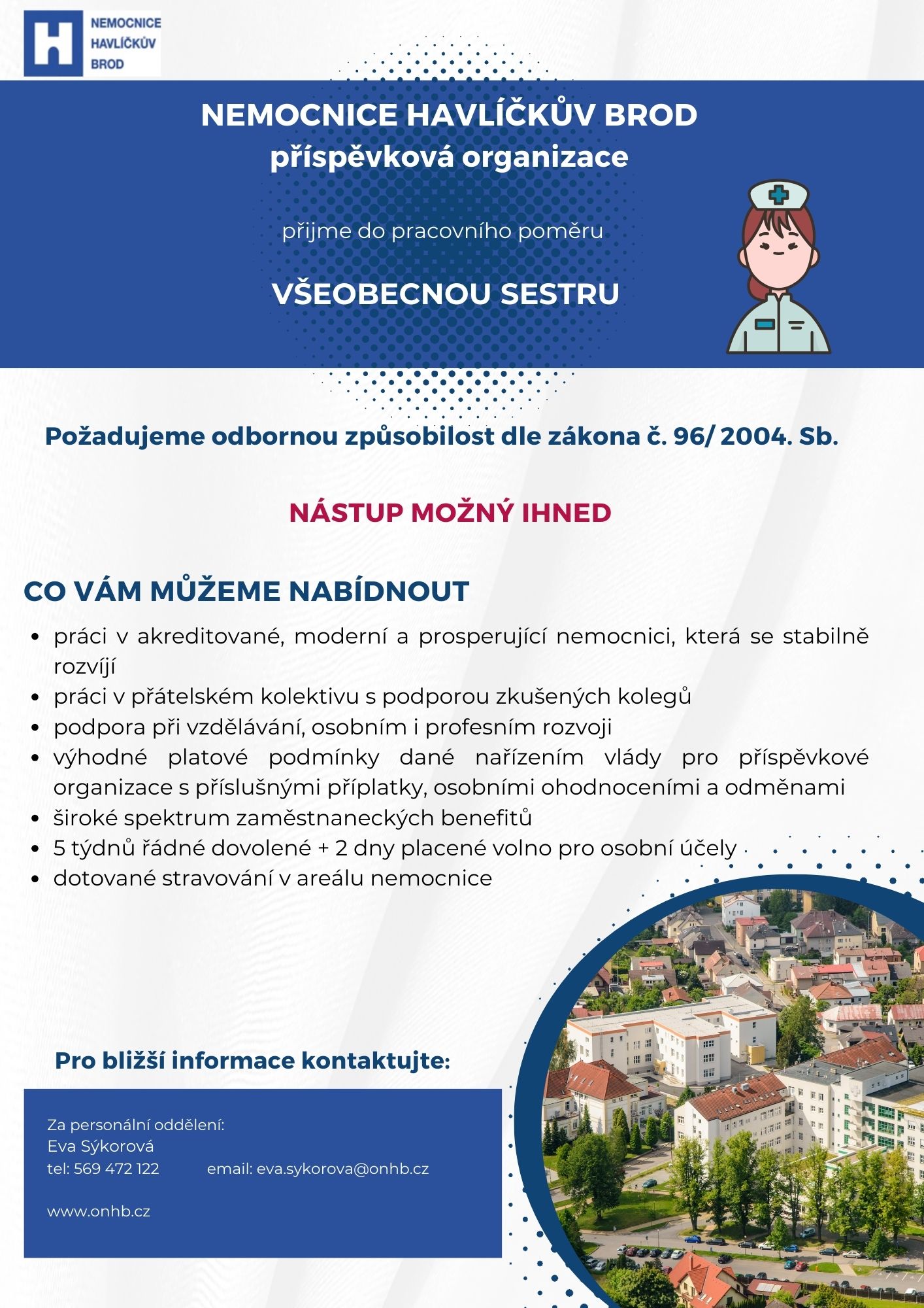 Do pracovního poměru přijmeme Všeobecnou sestru.