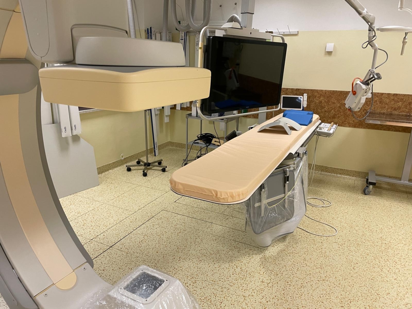 Naše oddělení je nově vybaveno moderním angiografickým kompletem Philips Alluera Xper FD 20, sloužícím k zobrazení tepenného a žilního systému. Rutinně vyšetřujeme tepenný systém pánve a dolních končetin, hlavně u pacientů s ischemickou chorobou dolních končetin. Na podkladě vyšetření následuje buď balónková angioplastika (PTA) s případným zavedením tepenné výztuhy - stentu nebo chirurg provede přemostění uzavřeného úseku tepny pomocí bypassu. Také často vyšetřujeme a dilatujeme či rekanalizujeme nefunkční dialyzační zkraty. Tím se významně ovlivňuje životnost dialyzačních spojek a tak kvalita života dialyzovaných pacientů.