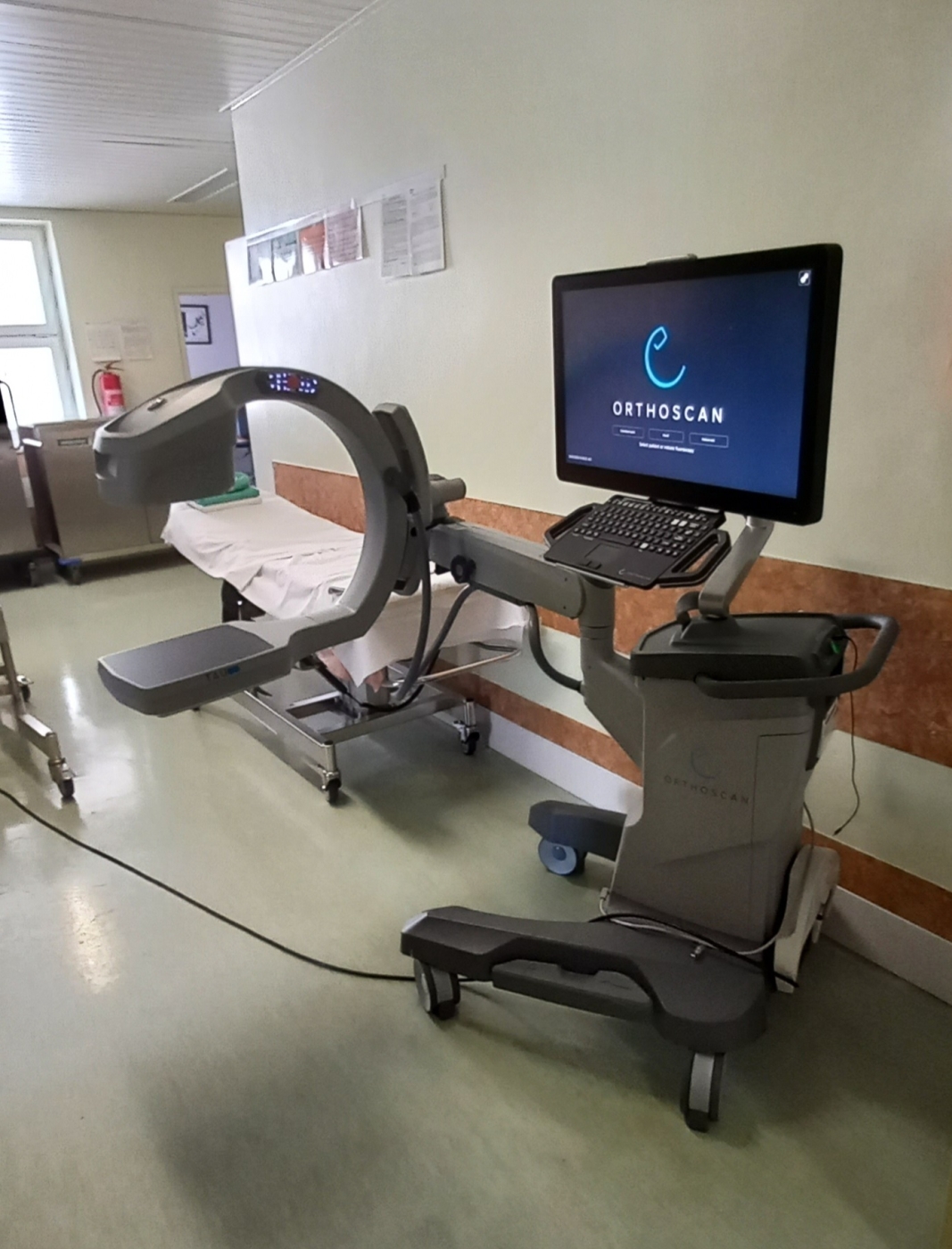 Pojízdné C-ramena používáme pro skiaskopickou kontrolu léčebných výkonů během zákroků především v traumatologii a urologii.